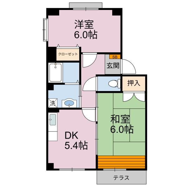 2DK DK 5.4帖 / 洋 6.0帖 / 和 6.0帖