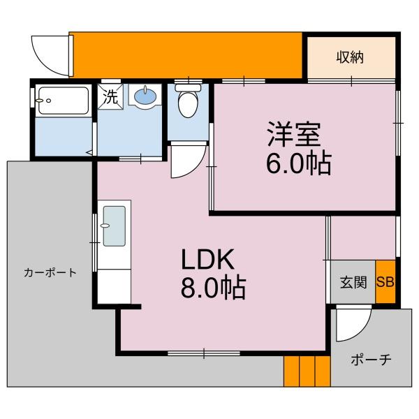 1LDK LDK 8.0帖 / 洋 6.0帖