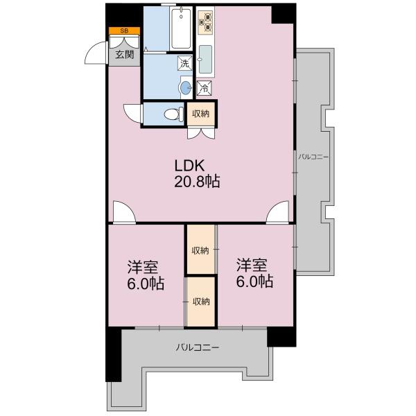 2LDK LDK 20.8帖 / 洋 6.0帖 / 洋 6.0帖