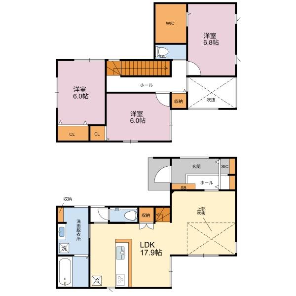 1F LDK 17.9帖 / 2F 洋 6.8帖 / 2F 洋 6.0帖 / 2F 洋 6.0帖