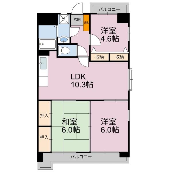 3LDK LDK 10.3帖 / 洋 6.0帖 / 和 6.0帖 / 洋 4.6帖