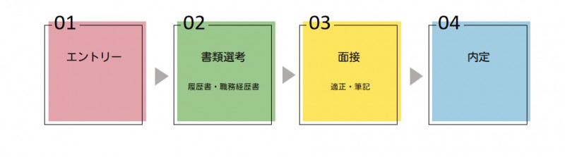 電話連絡のうえ、履歴書(写真貼付)をご郵送ください。 追って面接等の日時を設定させていただきます。 |